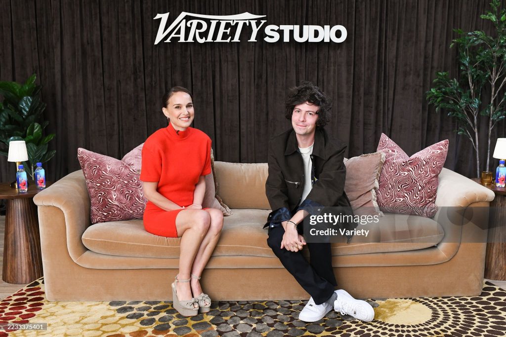 Natalie and director Ugo Bienvenu are at the Toronto Film Festival today to attend the North American premiere of Arco, the French animated film produced by MountainA, Natalie and Sophie Mas’s production company. Before the event, they are attending a few press junkets. The first of these is a stop at Variety’s studio at TIFF to cover the festival. We have the full video and some photos from the meeting: