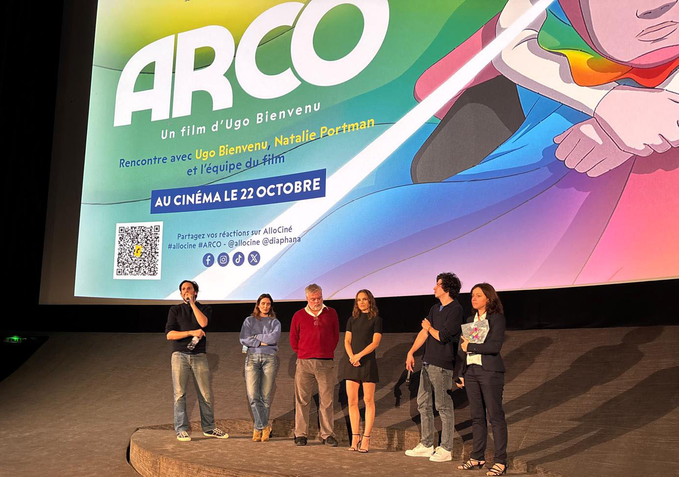 Natalie attended a preview screening of “Arco” in Paris yesterday. The event, which included a Q&A session with her and director Ugo Bienvenu, was sponsored by Allocine. We have some photos and a couple of videos of Natalie’s appearance after the jump: